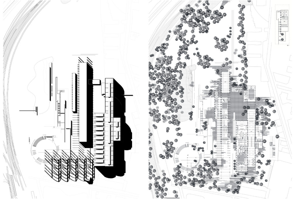 Situés dans une zone avec un fort taux de chômage, l’enseignement est au centre du programme avec la fabrique d’une école par apprentissage pour les jeunes. Les nefs des cathédrales accueillent des salles d’exposition servant à montrer le travail des étudiants. Les salles de classe sont regroupées dans deux bâtiments neufs, liés aux existants par une esplanade minérale.
