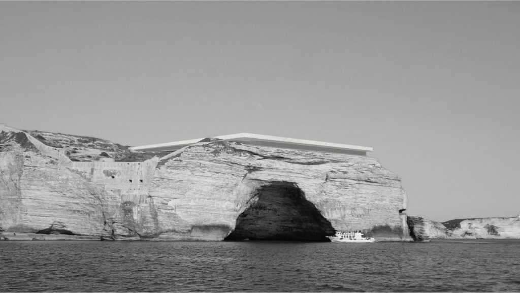 A la pointe de l’ancienne ville de Bonifacio, un hôtel pour musiciens est niché au creux des rochers. Une esplanade ainsi qu’un amphithéâtre en plein air est dédié aux musiciens pour leur festival annuel.